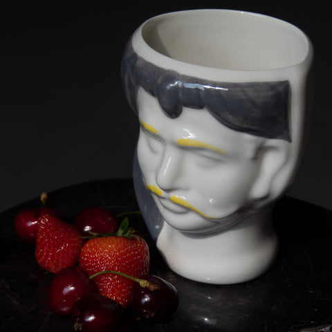 Vaso in ceramica a forma di testa di moro fatto e decorato a mano.