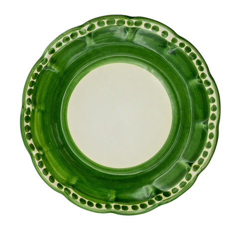 Piatto Frutta in ceramica con smalto bianco e fascia decorata a mano.