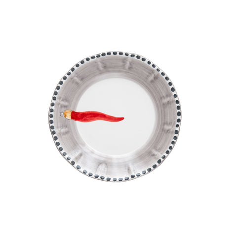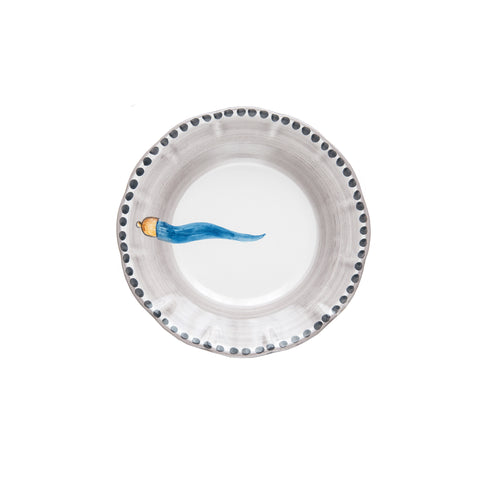 Piatto piano in ceramica, vari colori, dipinto a mano.