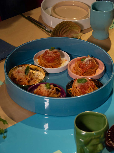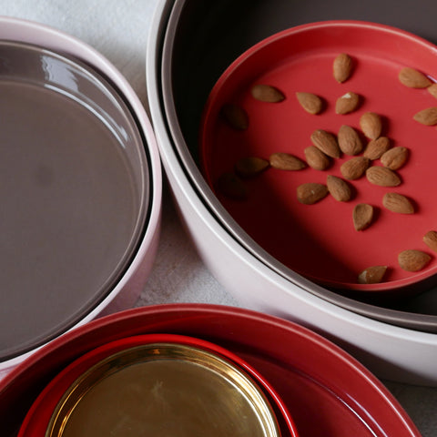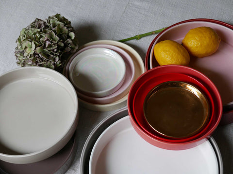 One heart within the other that serves everything, crossing ages and functions. From the largest diameter to the smaller ones everything is contained in a single ceramic object: they are bowls, plates, trays. Cylinders varying in colour and sizes, coming together in a single harmonious composition of different hues: those cold as water for Cerchia Navigli; warm tones such as shades of red for Cerchia Bastioni and neutral contemporary shades of white for Cerchia Circonvallazione.
