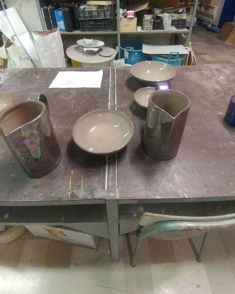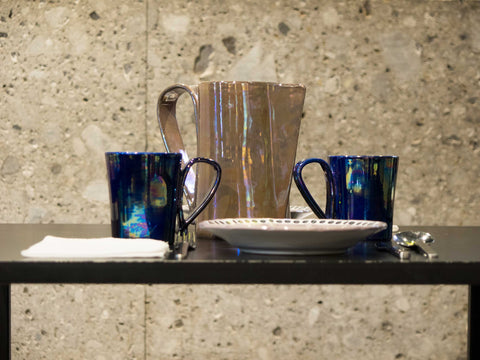 The project by Ceramiche Biagioli and Waiting for the busI lustri, tableware luster ceramics