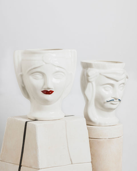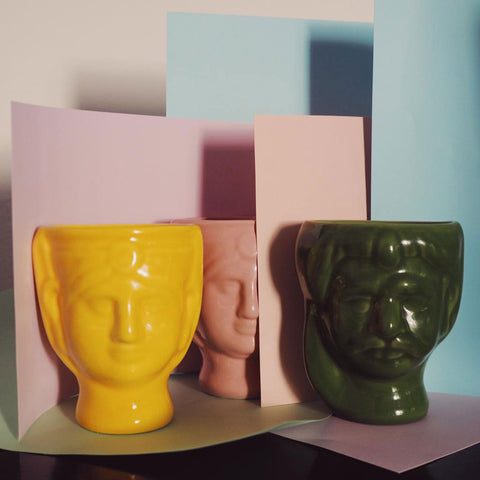 Le teste di moro in ceramica sono un prodotto tipico di Caltagirone, città situata a 68 chilometri da Catania, tra i siti patrimonio dell'umanità UNESCO. Si possono vedere su balconi e terrazze e all'ingresso delle case, come contenitori perfetti per fiori e piante aromatiche. L'attesa dell'autobus ha trasformato questi oggetti iconici realizzati a mano in pezzi di design, personalizzandoli con colori pop, versioni monocromatiche con finiture opache e lucide o ancora madreperla, argento e oro.
